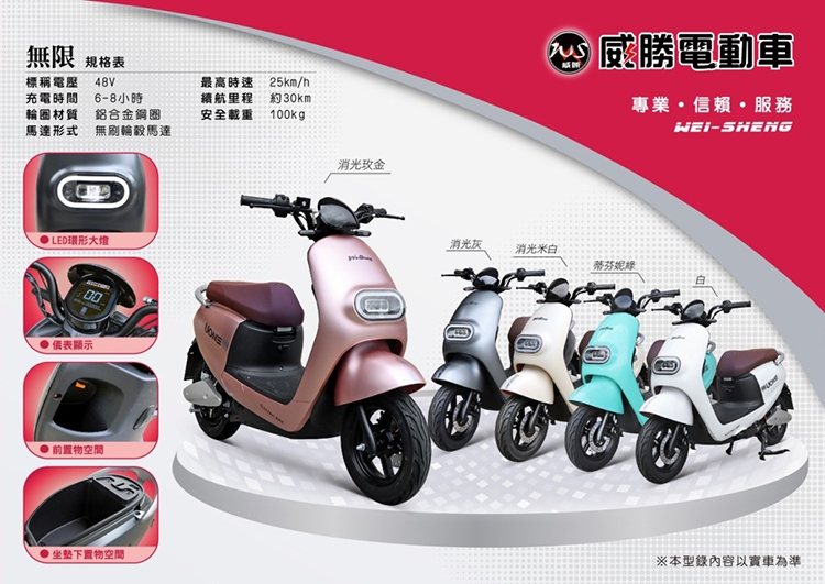 消耗性零件不予保固如: 內外輪胎, 煞車皮, 煞車線, 燈泡,風嘴頭,等其它零件,以及人為因素造成均不保固